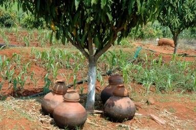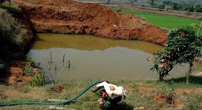 Double benefit: irrigation and recharge of the well and fish from the farm pond