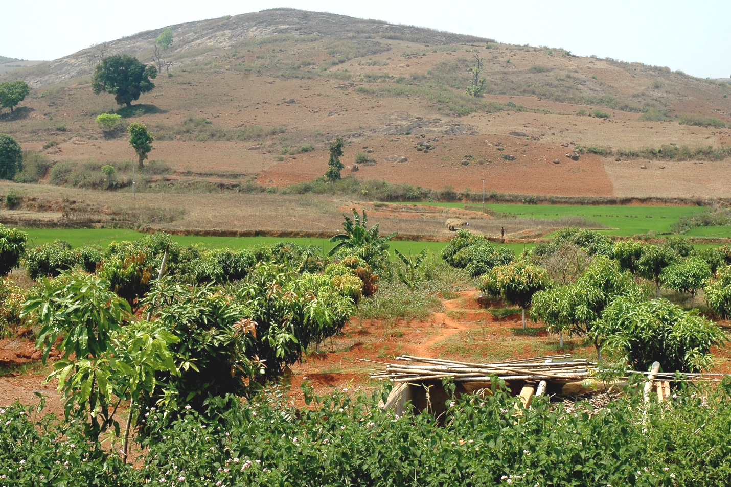 The transformation of the patch of land which is not different than undulating mass of degraded lands gradually started since the year 2011. When Budununi and Nath, one of the100 Kondh Adivasi families of Khajuriput, decided to use their patch of land differently. Agro forestry, mixed farming, , cover cropping, hedge planting with live fencing.